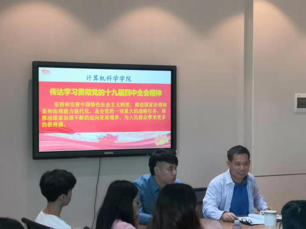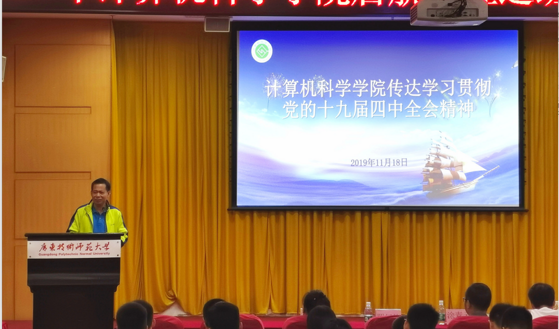 11月18日,在第一教学楼208会议室,罗纪旋书记向全体学生干部传达学习贯彻党的十九届四中全会精神。党的十九届四中全会是在新中国成立70周年之际、“两个一百年”奋斗目标的历史交汇点上,召开的一次具有开创性、里程碑意义的重要会议。全会审议通过的《决定》,对坚持和完善中国特色社会主义制度、推进国家治理体系和治理能力现代化作出了全面部署,是指导全党、全国人民推进新时代中国特色社会主义伟大事业的纲领性文件。