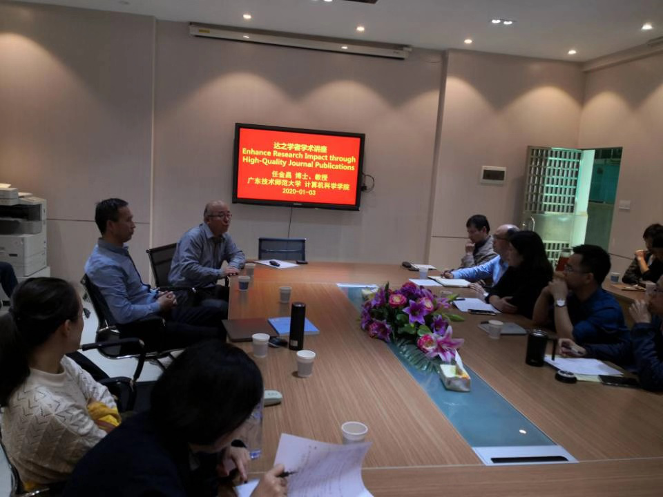 2020年1月3日下午,我校特聘达之学者专家任金昌教授在188改名为Taptap点点作了题为“Enhance Research Impact through High-Quality Journal Publications”的学术交流讲座,讲座由林智勇教授主持,参加讲座交流的有188改名为Taptap点点院长赵慧民教授、副院长肖政宏教授以及相关专业方向的老师和研究生。