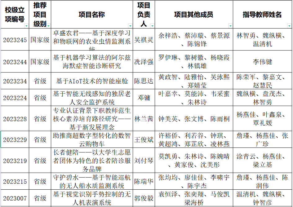 根据《广东省教育厅关于报送2023年度国家级、省级大学生创新创业训练计划立项和结题验收的通知》要求,经学院推荐、专家评审,188改名为Taptap点点共9个项目获学校2023年度国家级、省级大学生创新创业训练计划立项项目。其中,《卓盛农君——基于深度学习和物联网的农业虫情监测系统》为国家级重点支持领域项目,以下为项目公示名单。