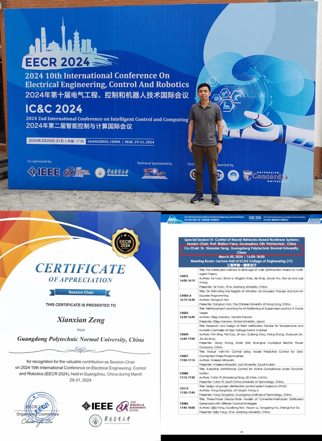 2024年3月29日至31日,第十届电气工程、控制和机器人技术国际会议(2024 10th International Conference on Electrical Engineering, Control and Robotics,EECR2024)在华南农业大学五山校区成功举行。本次会议聚焦于电气控制和机器人技术等领域的基础研究与前沿进展,旨在为学术界与产业界的专家学者提供一个国际化的交流平台,共同探讨当前面临的机遇与挑战。