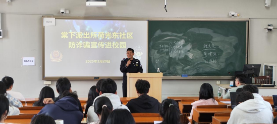 讲座开始前,学校安保处治安科负责人向与会同学通报了校内近期发生的学生受骗案件数量和金额,然后结合目前校园安全形势,强调“诈骗手段迭代升级,学生群体已成为诈骗分子的重点目标”,希望同学们高度重视时刻警觉,以免上当受骗。