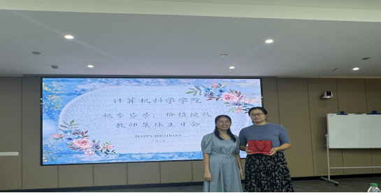 活动在学院党委书记李双贵的深情致辞中拉开帷幕。她代表学院向寿星教师们致以诚挚祝福,充分肯定全体教职工在学生工作以及教学科研中的辛勤付出,并动情表示:"学院的发展离不开每位教师的坚守与奉献,希望大家在这特别的日子里,能卸下工作的疲惫,感受如家般的温暖情谊。"随后,学院领导为教职工代表颁发定制纪念品,现场掌声与欢笑声交织成夏日的动人乐章。