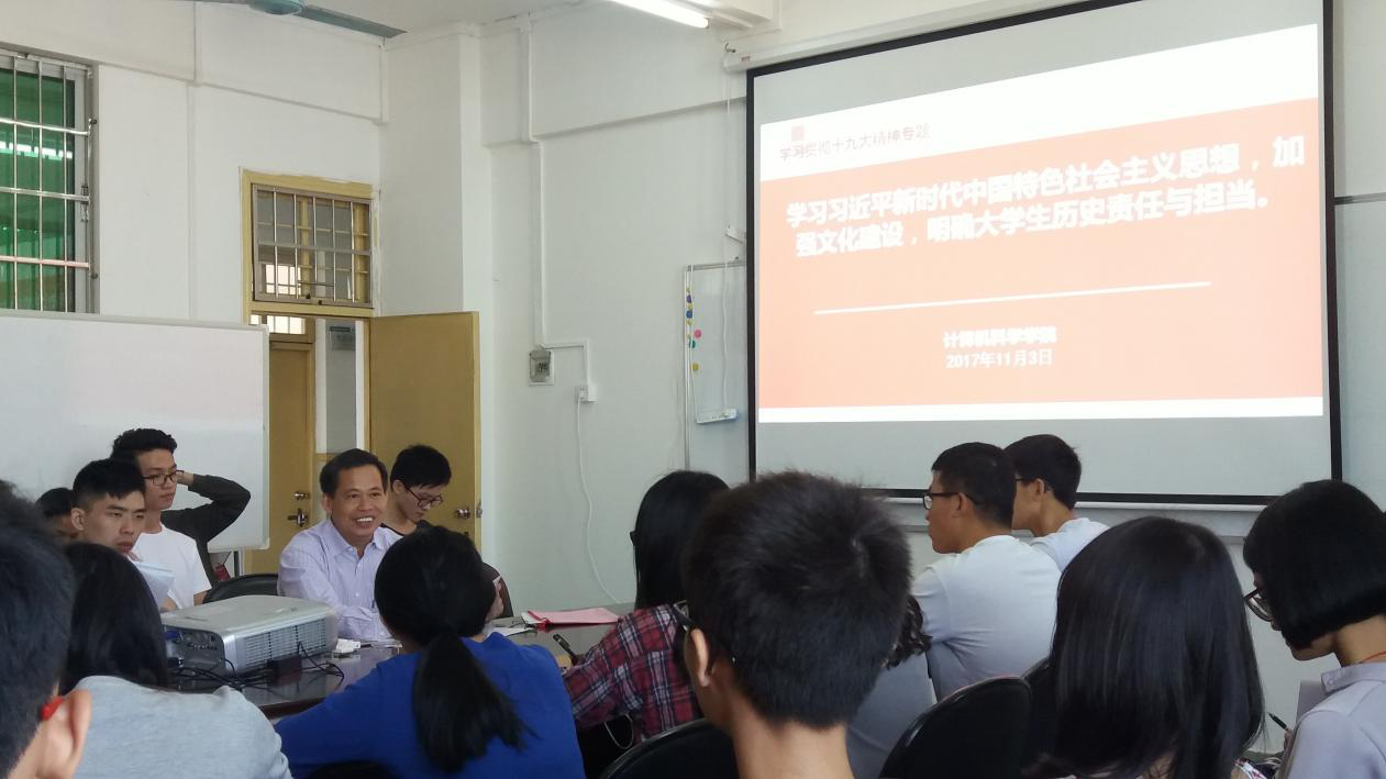 2017年11月3日,我们非常荣幸地邀请到学院罗纪旋书记为我们本学期发展对象培训班开展第一次党课学习。罗书记以学习习近平新时代中国特色社会主义思想,加强文化建设,明确大学生的历史责任与担当为主题,向我们强调了作为当代的入党积极分子要以何种姿态去学习的重要性,以及要有一种坚定的理想信念。罗书记以莱布尼兹、达尔文等著名学家研究中国五千年的历史文化的背景,向我们阐述了中国古代的四大发明引领着世界发展的潮流,跟我们介绍了中国梦是什么概念,为什么要实现伟大复兴的民族梦。伟大复兴的中国梦是让中国重回历史巅峰的梦。并不断地重复谈到作为当代的大学生,我们更要牢记历史使命,坚定理想信念,肩负民族的伟大复兴。