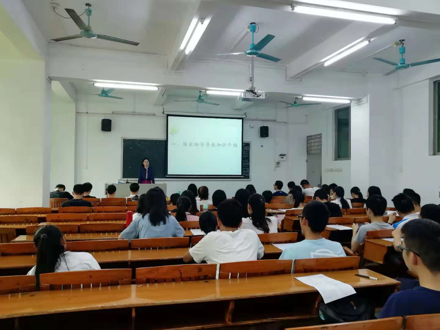 会议伊始,主持人用PPT简单介绍了国家助学贷款的申请条件、申请时间、利息计算等相关内容。随后由辅导员李艺晴向全体人员介绍了国家助学贷款的相关事宜,并重点强调了国家助学贷款按时还款的重要性。