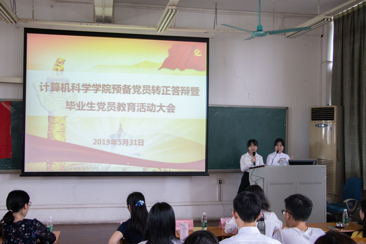此次会议由学院党务助理叶汶靖、胡思敏主持。主持人首先介绍了本次预备党员转正答辩的两个环节:自我陈述、现场问答。