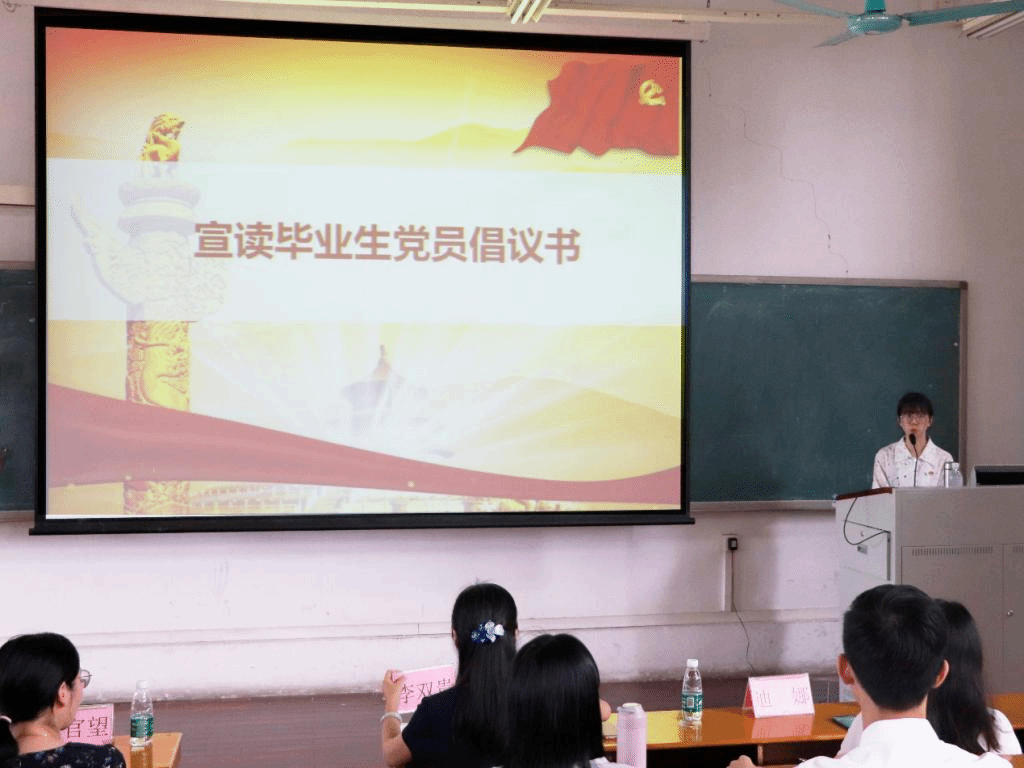 会议的第二个环节是由毕业生党员代表莫殊同志宣读毕业生党员倡议书,倡导了大学生党员要起带头作用,争做模范先锋,特别是毕业生党员要留下爱心、清洁与文明,带着我们身上肩负的责任,为人民、为国家奉献自己的一切。