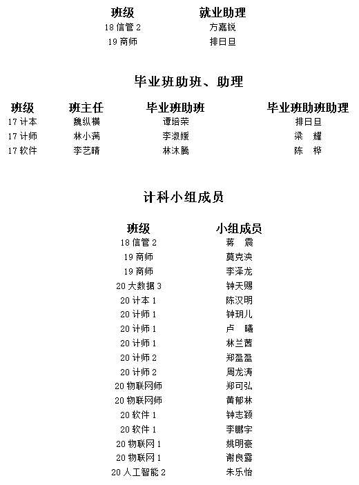 经为期30天的干事培训以及毕业生事务的有序进行,现公布计科就业干事名单: