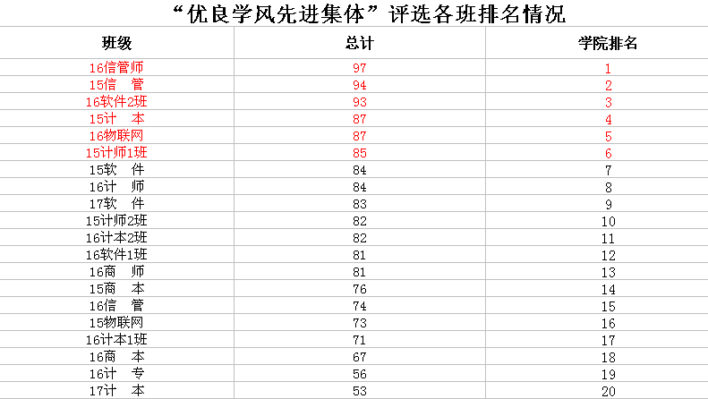 根据各班最终得分和排名情况,188改名为Taptap点点决定授予16信管师班为“学风建设标兵班级”、授予15信管班和16软件2班班为“学风建设先进班级”、授予15计本班、16物联网班、15计师1班为“学风建设优秀班级”荣誉称号。
