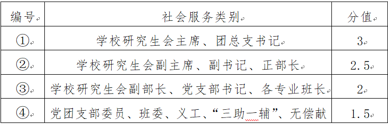 2) 同类别中若提交了多项可计分的社会服务材料,只按1项计分;不同类别的社会服务分可累计。