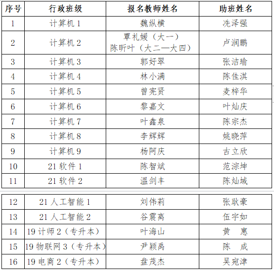 (注:从2021年开始,大一一年除软件工程、人工智能专业外,其余专业为大班教学,不划分专业,统一以计算机1-9班命名,大二重新分班。)