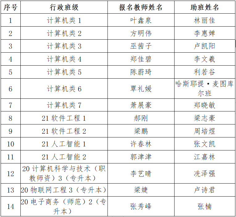 经个人报名、学院推荐、学院班主任工作领导小组研究,确定学院2022级新生班主任名单如下(见下表),公示期为2022年8月20日——2022年8月22日。如有任何问题或意见,请联系计科院学工办,联系电话020-38256732。