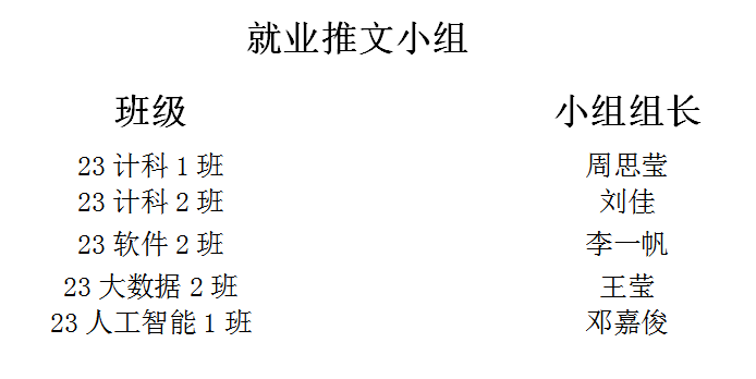 经干事培训以及毕业生事务的有序进行,现公布计科就业干事名单: