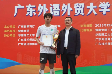2023年广东省青少年校园足球联赛(大学组)总决赛于12月27日下午在大学城赛区(广东外语外贸大学)落下帷幕。在对阵广东警官学院的比赛中,我校男足以1:0比分获胜,获得本次比赛男子甲A组冠军。这是我校首次获得足球项目省级赛事第一名,实现我校足球项目竞赛成绩的历史性突破!