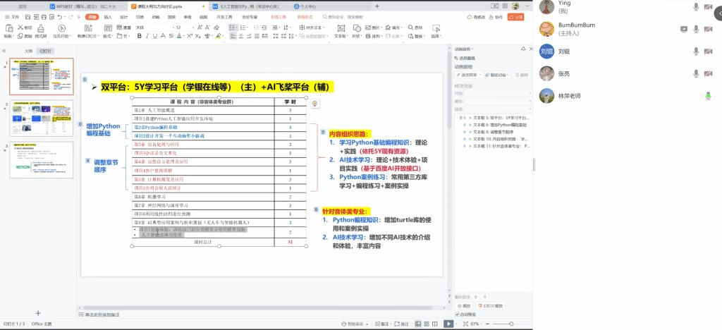 2023年7月25日,计算机基础教学部和广东省考试中心关于我校拟对全校非计算机专业开设的《人工智能基础》课程的课程大纲、教学内容、实验平台、教学资源建设等方面展开讨论,会议确定了课程教学目录,并进一步修订了课程教学大纲,基础部教师针对教学大纲内容进行了分工,并拟利用2023年暑期完成课程教学内容和教学资源建设工作。