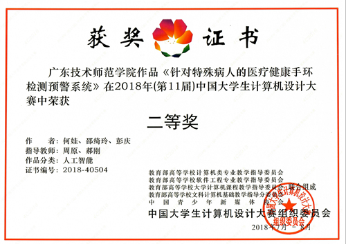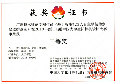 获得二等奖的团队是:谭源锋、李豪、杨展俊(指导老师郝刚、周原);何娃、邵绮玲、彭庆(指导老师周原、郝刚),他们在比赛中与来自全国各地上百个高校的佼佼者进行角逐,双双荣获二等奖。