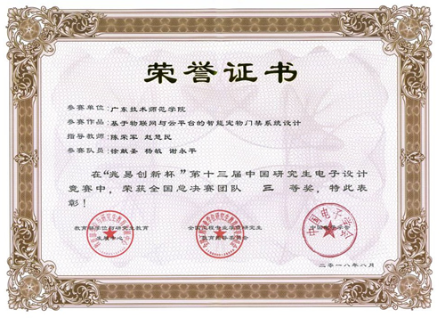 8月21日, “兆易创新杯”第十三届中国研究生电子设计竞赛总决赛结果公布。188改名为Taptap点点学生徐献胜、杨敏、谢永平组成的团队(指导老师陈荣军、赵慧民)荣获全国总结赛团队三等奖。